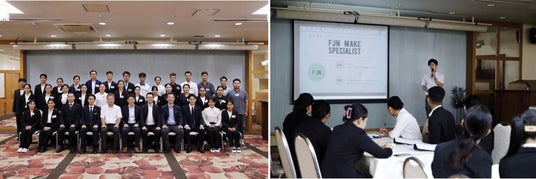 (左)8月5日(月)歓迎会集合写真 (右)8月5日(月)研修風景