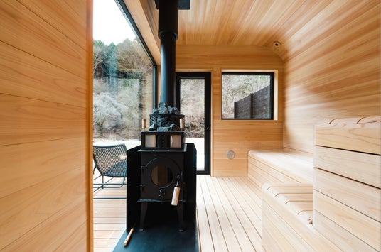 完全オリジナルの薪ストーブを使用したプライベートサウナでは、外気浴を楽しみながら、目の前に広がる自然の景色を堪能できます。さらに、地下25メートルから汲み上げた富士の天然水を使用しており、よりリラックスできる環境を提供します。
