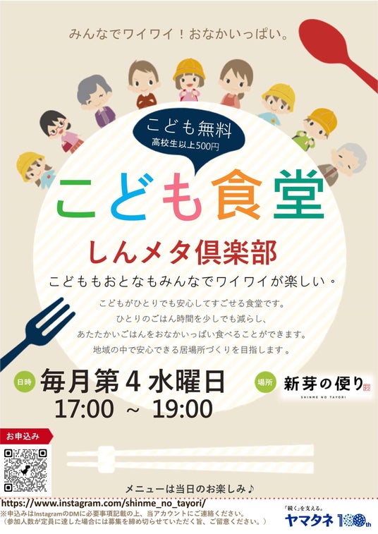 株式会社ヤマタネ(本社:東京都江東区、代表取締役社長:河原田 岩夫、以下「ヤマタネグループ」)は、2024年7月3日に創業100周年を迎えました。これを記念し、これまでの感謝の気持ちを込めて少しでも地域に貢献したいという想いから、6月3日に深川にオープンしたヤマタネグループの情報発信拠点 おむすび屋『新芽の便り』にて、こども食堂『しんメタ倶楽部』の活動を8月28日より開始いたします。
