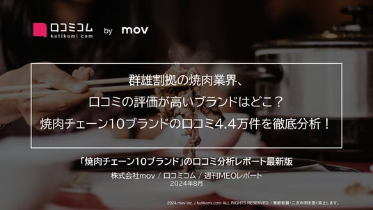 AI店舗支援SaaS「口コミコム」を運営する株式会社mov(代表取締役:渡邊 誠、本社:東京都渋谷区、以下mov)では、『口コミコム』の分析機能を用いたレポートを公開しました。