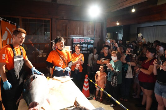 青森県庁職員木村さんと漁師カードで大人気の豊島さんによるマグロの解体ショー