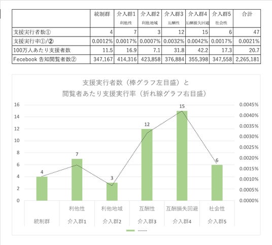クラウドファンディングで寄付をする動機としては、利他性(助けてあげたい)・互酬性(相応のリターンを得たい)・社会性(プロジェクトに参画したい)・自己実現等様々であり、行動インサイトの知見を用いてそれらに働きかけて、効果を確かめるというものです。