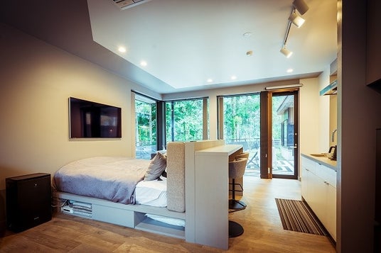 宿泊棟のサウナは通常宿泊専用で、洋室はフィンランド製のHARVIA社の薪ストーブ、和室は囲炉裏の空間をイメージした電気ストーブを採用し、どちらのサウナも "ととのえ親方" こと松尾大氏が監修をした本格的な造りになっています。