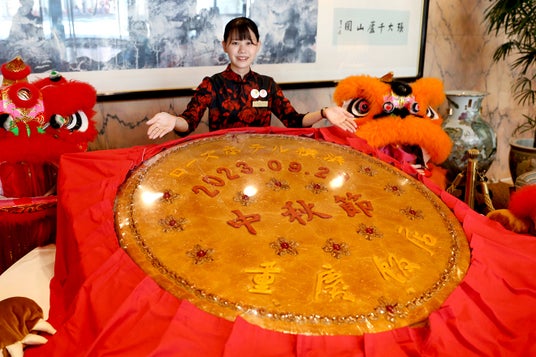 この企画は、日本のお月見と同じ日にあたる中国の「中秋節」の文化について、多くの方に触れていただける機会となればと1994年に始まり、今年で31回目を迎えます。この大月餅は、自社工場 (重慶飯店 食品工場 横浜市金沢区幸浦 2-12-19) の職人により手作業で作られ、直径1m、重さ60kg、約300人分相当の大きさになります。展示期間中「中秋大月餅クイズ」をオンラインにて開催いたします。また、重慶飯店では中秋節にちなみ、アヒルの塩卵を月に見立てた各種月餅を販売いたします。