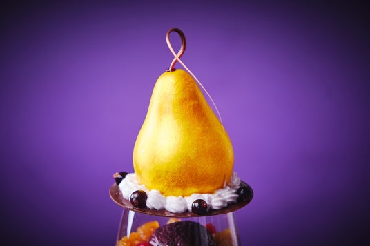 洋梨のシャンティを中に忍ばせた洋梨の飴細工