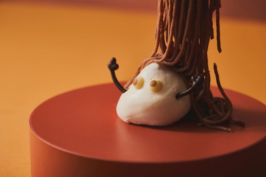 まろやかな甘味が特徴の「dari Kミルククーベルチュール」とリンゴのガナッシュを、「dari Kホワイトクーベルチュール」でコーティングし、いたずらっ子のミイラに見立てました。