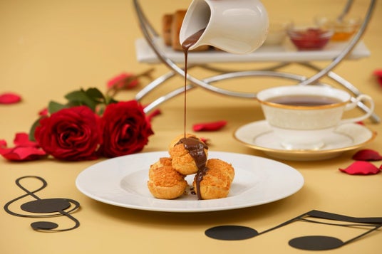 ラ・スイートのアフタヌーンティーは季節ごとにテーマやメイン食材を変えて提供しており、10月~12月のテーマは「シンフォニー」。ショコラをふんだんに使用したスイーツ、フランボワーズがほのかに香るスコーン、ショコラと相性抜群のセイボリーが奏でるシンフォニーをぜひご堪能ください。プチシューにチョコレートソースをかけて愉しむプロフィットロールや、クランベリーが爽やかなドリンク「スカーレットハーモニー」もご用意いたします。