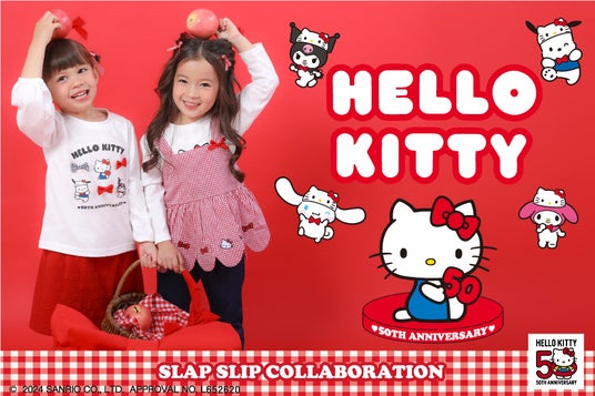 神戸発、子供アパレルの株式会社べべ(本社:兵庫県神戸市、代表取締役社長:卜部 正寿)が展開する「SLAP SLIP(スラップ スリップ)」は、株式会社サンリオのキャラクターで今年50周年を迎えた「ハローキティ」とコラボレーション。8月16日(金)よりSLAP SLIP(スラップ スリップ)全国57店舗、BEBE公式オンラインストア(BEBE MALL)にて同時発売。