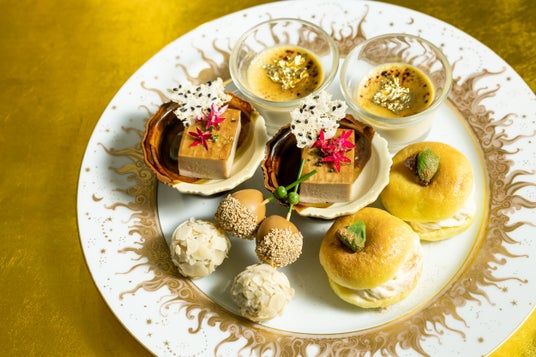 この秋のアフタヌーンティーは、コース仕立てのメニュー構成で、ウェルカムドリンクに始まり、プティフルプレート、3段アフタヌーンティースタンド、本プロモーションのメインとなるグランドデザート「搾りたてモンブラン」をテーブルまでお届けいたします。アフタヌーンティースタンドには、ゴールドカラーのクレマカタラーナ(カスタードの上にパリパリのカラメルがのったスイーツ)や、ドングリを模したアスコラーナ(揚げたオリーブに肉を詰めたもの)などエレガントでありながら、遊び心を取り入れたスイーツ&セイボリーで表現。この季節ならではの栗やさつまいも、洋梨やイチジクなどを使用し、味わいながら秋の味覚狩りをご堪能いただけます。また、デコレーションに金箔や金粉を用いて、「豊かさ」を象徴する‘ゴールド’をアクセントに使用することで、見た目にも華やかで優雅なティータイムを演出いたします。