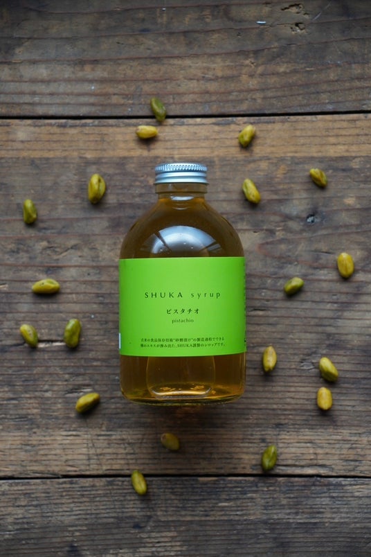 ナッツの女王とも言われるピスタチオ。特に色が鮮やかな若い"スーパーグリーン"と呼ばれるものだけを漬け込んだ、軽やかなシロップ。