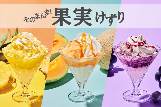 「そのまんま果実けずり」は、凍らせた果実をかき氷のように削って、杏仁豆腐やナタデココと一緒にエスプーマクリームも加え、最後まで果肉のそのままの美味しさと味のバリエーションを感じられる、新感覚のデザートです。この夏は、「パイン」「メロン」「巨峰」の3種類をご用意致しました。