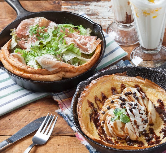 JR川崎駅直結の複合施設「ラゾーナ川崎」4Fにある、アツアツもちもちのパンケーキ"ダッチベイビー"やソフトクリームを使ったオリジナルシェイクが楽しめるカフェ。香ばしくてもちもちとしたクラストと卵の甘みを感じる自家製生地のパンケーキ"ダッチベイビー"は、お食事系~スイーツまで豊富なバリエーションをご用意。また、オリジナルシェイクはテイクアウトでもご利用いただけます。お買い物の休憩、休日のブランチ、お友達と過ごすティータイム、ファミリーでシェアするディナータイム。今までにない食感とスタイルが自慢のパンケーキをお楽しみください!