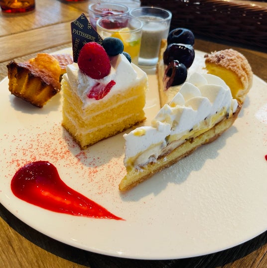 50年以上多くの人に愛されるBASELのケーキや焼き菓子やシェフの作る季節のスイーツ7-8種類から、お好きなデザートを選んでお好みの盛り合わせプレートに。