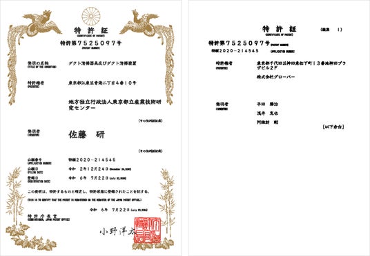 出願人:地方独立行政法人東京都立産業技術研究センター、株式会社グローバー(共同出願)
