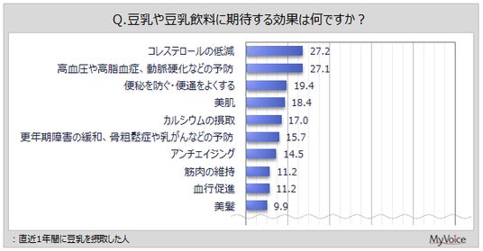 豆乳の摂取状況や期待する効果などについて聞いています。調査結果をお知らせします。