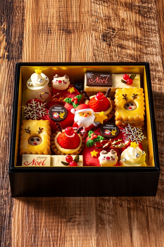 さらに今年は開業55周年を記念し、特別ケーキ「cadeau de fraises(カドー ドゥ フレーズ)」をご用意。贅沢にも苺を55粒使用したタルトの周りを、チョコレートで模った大きなリボンで飾りました。数量10個限定販売のスペシャルクリスマスケーキで、心ときめく聖夜を華やかに彩ります。たいせつな方と過ごす、特別なクリスマスの贈り物として、苺好きの方必見のクリスマスケーキです。