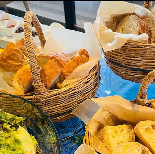 ビュッフェにならぶパンは、BASELパン工房で焼き上がったものを直送、お飲み物も、コーヒーも自家焙煎のこだわりコーヒー豆を使ったカフェオレやフレッシュジュースをお楽しみいただけます。