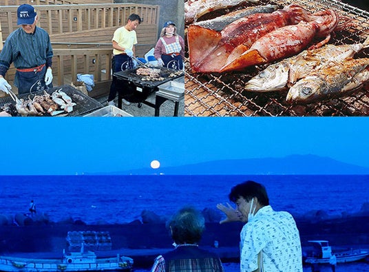 毎月、満月の日に北川漁港の広場「ムーンロードテラス」で開催される、北川温泉のご当地イベント「ねこさいの日」。海に感謝を捧げ、漁の安全を祈り、地元の「ねこさい(定置網漁)」で獲れた新鮮な魚介の炭火焼が、無料で振る舞われます。ブリやサバ、アジ、イカなど、ねこさいで獲れる魚介は日によって違うので、何が振る舞われるかは、その日のお楽しみ。満月の日、夕暮れからムーンロードテラスで、日本百名月に認定されている北川温泉の名物「ムーンロード」の出現を待ちましょう。