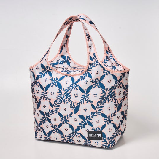 ノスタルジックな花柄は、ベースにピンクベージュを使ったニュアンスカラーで、白い花や葉っぱが華やかに浮かび上がる、温かみのある仕上がりに。普段の買い物から、ピクニックやアウトドアシーンなど、様々なシーンで使えるエコバッグ。ピンクベージュにグリーンが映える花柄はコーディネートのアクセントにもなり、オンオフ問わず使いやすいデザインです。