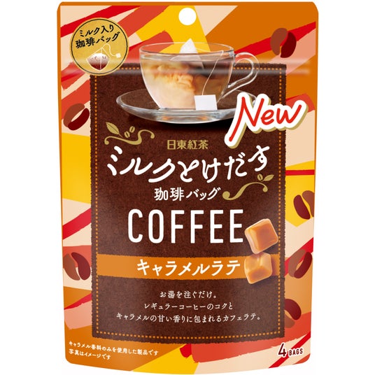 昨年発売した「日東紅茶 ミルクとけだす珈琲バッグ カフェラテ/キャラメルラテ4袋入り」はたくさんのご意見を頂戴しました。そのご意見を参考にし、「淹れたてのレギュラーコーヒーの香りとコクはそのままにフレーバーの香りと甘みが重なり合うスイーツのようなカフェラテ!」を新たにコンセプトに設定し、開発に取り組みました。
