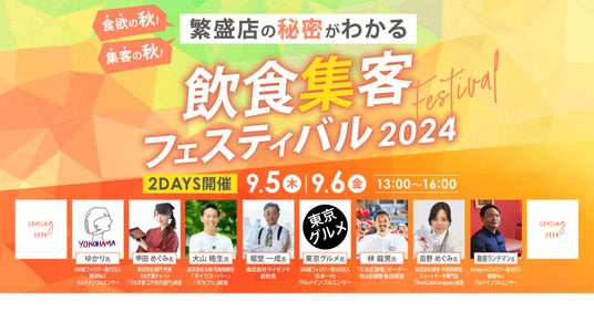 飲食店経営者やこれから開業を目指す方々に向けたオンラインイベント「飲食集客フェスティバル 2024」が、2024年9月5日(木)・6日(金)の2日間にわたり開催されます。本イベントは、飲食業界で活躍するトッププロフェッショナルたちが集い、繁盛店を目指すための経営ノウハウから、現代に不可欠なSNS集客術まで、実践的な知識を提供します。