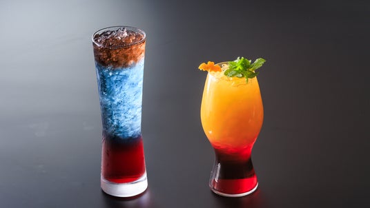 高貴な血を思わせる深い赤と魔法のエッセンスが込められた青が特徴のカクテルです。青い部分は爽やかなブルーキュラソーがベースとなり、赤い部分はグレナデンシロップとフルーティなチェリーリキュールで作られています。上には黒いウォッカが浮かび、夜の闇を連想させます。