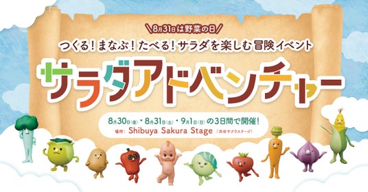 キユーピー株式会社(本社:東京都渋谷区、代表取締役 社長執行役員:高宮 満、以下キユーピー)は、 8月31日の「野菜の日」に合わせ、サラダを楽しむ冒険イベント『サラダアドベンチャー』を8月30日(金)から9月1日(日)の3日間限定で開催します。このイベントは、子どもたちにサラダをもっと好きになってもらいたいという思いで企画しました。「つくる」「まなぶ」「たべる」まで一貫して体験できるプログラムで、サラダの魅力を楽しむ機会を創出します。開催場所は、今夏、渋谷の新たなランドマークとして誕生した「Shibuya Sakura Stage(渋谷サクラステージ)」です。