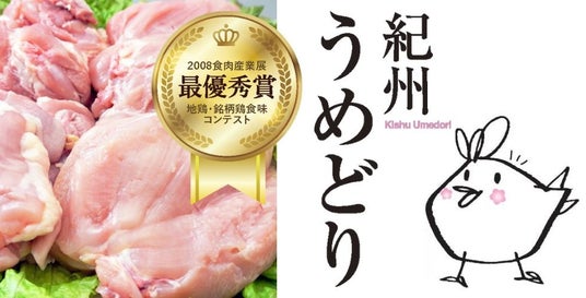 「紀州梅そだち」を与えた鶏の肉はやわらかくジューシー。臭みがなく、世代を超えて支持されています。有名な地鶏を抑え、2008 年食肉産業展地鶏銘柄鶏食味コンテストで最優秀賞を獲得しました。