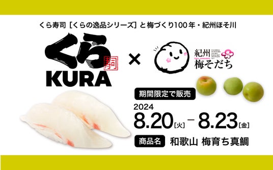 この度、「紀州梅そだち」を与えた真鯛がくら寿司のバイヤーが厳選した高付加価値な魚や地域の地魚などを数量限定で楽しめる「くらの逸品シリーズ」にて採用され、販売されます。