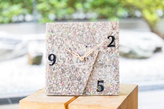 回収したゴミをアップサイクルブランド株式会社REMALEに集約し、すべてを粉砕し、溶解・成形し素材のニュアンスを残した板材を製造。この板材をオーダーメイドで時計に加工しました。