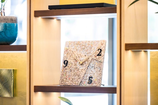 その取り組みの一環としてホテルから出たプラスチックゴミ、海に捨てられた廃棄物を回収し、異なる素材のプラスチックから板材を成形できる株式会社REMAREのマテリアルリサイクルの技術により、5施設で共通の板材を製造しました。クロスホテル3館、クロスライフ2館の5館共同で行うプロジェクト「CROSS for the BLUE」として、それぞれの施設の特徴にあったアート性の高い一点物の時計を制作し、各施設のパブリックスペースに展示いたします。