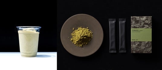 左:「発酵よもぎバナナスムージー」右:「発酵よもぎパウダー 12包入」