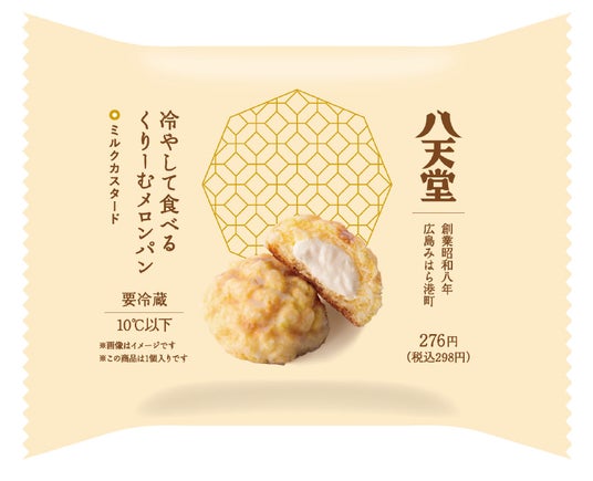 八天堂の代名詞である冷やして食べる「くりーむパン」に次ぐスイーツパンとして、八天堂の一部店舗やオンラインショップで人気の冷やして食べる「メロンパン」。今年春にファミリーマート限定仕様で発売し、ご好評の声を非常に多くいただきました。販売終了後も、お客様から本商品へのご感想や再販時期についてのお問合せをいただくなかで、この夏、再販が決定。暑い時期でもひんやり食べられる「スイーツのようなメロンパン」をぜひお試しください。
