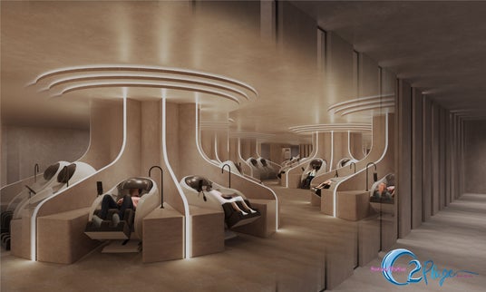 心身のパフォーマンスを効率的にあげる新たな体験を提供する当ゾーンは、高濃度酸素注入機を備えた最新型無重力マッサージチェア18台からなる未体験空間です。