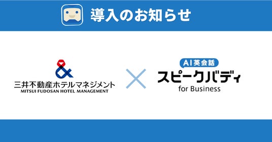 AI英会話アプリ「スピークバディ」の開発・運営を行う株式会社スピークバディ(本社:東京都中央区、代表取締役社長:立石剛史、以下「当社」)は、株式会社三井不動産ホテルマネジメントにて、急増する訪日客に対する接客現場での英語力強化策として、当社が提供する同アプリが正式に導入されたことをお知らせします。
