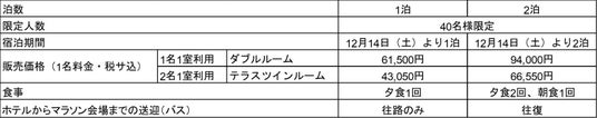 <マラソンランナー応援特典&送迎付き宿泊プラン概要>