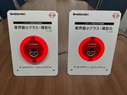火災発生時にいち早く知らせる機械です。実際にお試しいただけます。(提供:ホーチキ株式会社)
