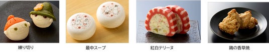 リトルミイとスナフキンの練り切りや、オリジナルデザインがプリントされたトマトポタージュの最中スープなど、洋風の食材をふんだんに使用しました。