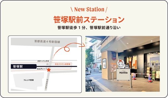 実証実験として、京王電鉄京王線 笹塚駅徒歩1分のステーションの運営を2024年8月26日(月)より開始いたします。現在マチルダのステーションは東京都内を中心に15箇所運営していますが、渋谷区におけるステーション設置は、今回の笹塚駅前ステーションが初めてとなります。
