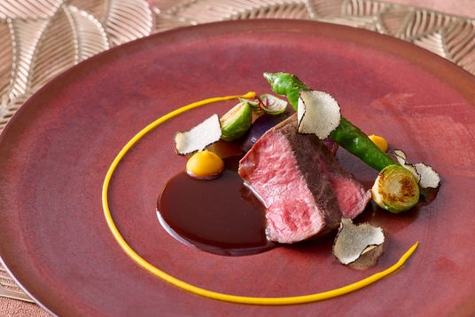 愛知牛のロティと秋野菜 三重県産南瓜のピュレと赤ワインのソース トリュフを散りばめて