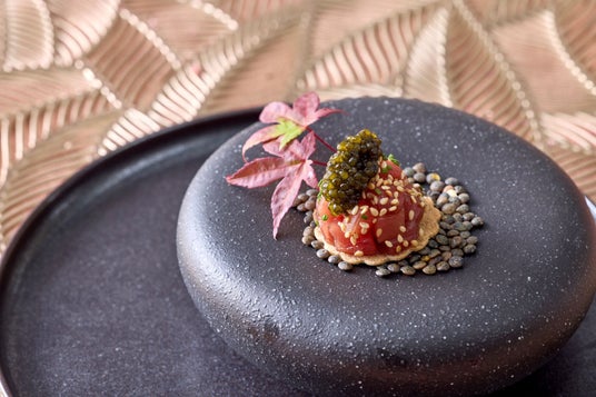 本マグロとオシェトラキャビアと葱のタルト