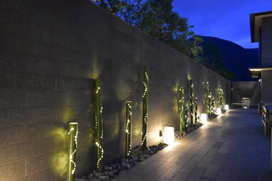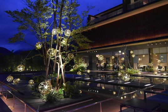 箱根・強羅 佳ら久では、これまでも四季を感じる奥深い箱根の魅力を情報発信をしてまいりました。今夏は、花崗岩や御影石、天然木など、和の趣を感じるロビーラウンジに、江戸時代に箱根越えする旅人の必需品、小田原提灯をモチーフにした「小田原鋳物風鈴」と伊豆半島の中央を流れる狩野川の砂鉄や、富士山や箱根山の火山灰が含まれ青緑がかった手作り硝子の「みしま風鈴」を吊るし、心地よい音色が和の癒しの空間を演出いたします。また、四季の景観と水の音が涼やかな「水のテラス」と荘厳な箱根の原風景を一望する「森のテラス」には、合わせて62個の竹毬と16本の竹灯籠を飾り、夕暮れから幻想的なライトアップをお楽しみいただけます。宙に浮かぶ竹毬と、水盤の水面に映しだされ、美しい情景を眺めながら散策するのもおすすめです。