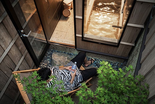 各部屋の浴室には檜の風呂はもちろん檜でつくられた水風呂を設置し、リラックスできるチェアをご用意したととのい場で身体をととのえ、旅の疲れを癒していただけます。