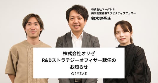 この度、鈴木健吾さんが当社に参画していただいたこと大変嬉しく思っています。鈴木さん(普段は健吾さんなので以下、健吾さん)との出会いは、2022年に先輩経営者から紹介してもらったところからになります。それ以前より株式会社ユーグレナならびに健吾さんのご活躍はよく耳にしておりました。 初めてお会いした日にオリゼについてのプレゼンをさせていただいたのですが、「米麹には可能性ないですね」と言われたらどうしようと緊張しながら話したのをすごく覚えています。結果そんなことはなく、健吾さんのやさしいお人柄からもらった親身なアドバイスとご自身も米麹の可能性を感じておられることで意気投合しました。 その後は当社としてもR&Dが本格始動していなかったので定期的な情報交換をする関係性でしたが、全社としてR&Dへの強化を発表した2024年より私からオリゼ社に参画して欲しい旨を伝え、今回のような形が実現しました。 今後健吾さんと一緒に米麹や発酵の可能性を研究し、世界中だけでなく宇宙中の人に広げることができることを大変楽しみにしています。