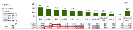 男性「運動」が上位 女性は「食生活」や「スキンケア」が上位
