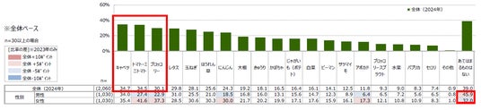1位「キャベツ」2位「トマト・ミニトマト」3位「ブロッコリー」