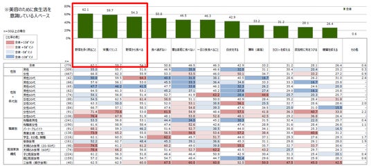 過半数の人が美容のために野菜の摂取量や食べる順番を意識