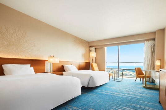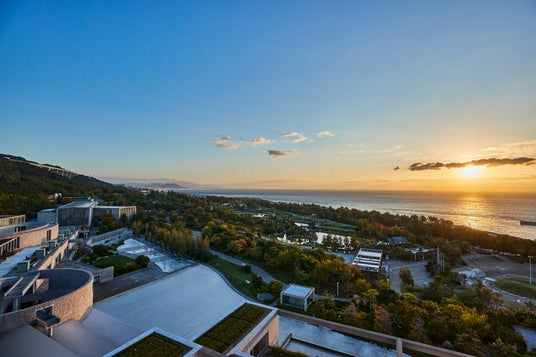 <グランドニッコー淡路>世界的な建築家、安藤忠雄氏が設計とグランドデザインを手がけた環境創造型施設「淡路夢舞台」の豊かな自然に佇む、グランドニッコー淡路。やわらかな陽光が差し込む客室には、窓の外に広がる青い海と空、緑に溶け込むような開放感あふれる空間が広がります。都会の喧騒を離れ、御食国「淡路」が誇る美食のおもてなしとともに、非日常の寛ぎを味わう特別なひとときをお過ごしいただけます。