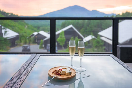 近年、ホテルのラウンジなどでアフタヌーンティーを楽しむ「ヌン活」が、SNSを中心に注目されています。この度、北軽井沢のあさま空山望は、 「ティー」ではなく「ワイン」を味わう新しいヌン活を提案します。ヴィラから見える浅間山は、季節や空模様により様々な表情を見せ、多くのお客様を魅了してきました。うつりゆく絶景を眺めながら、チェックインから夕食までのお時間をおくつろぎいただきたいという想いから、本プランの提供が実現しました。