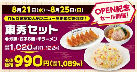 中華料理店「れんげ食堂Toshu」「中華東秀」を展開しているイオングループのオリジン東秀株式会社(本社:東京都調布市/代表:後藤 雅之)は、8月21日(水)、「れんげ食堂Toshu 葛西店」をメトロセンター葛西内に、開店いたします。